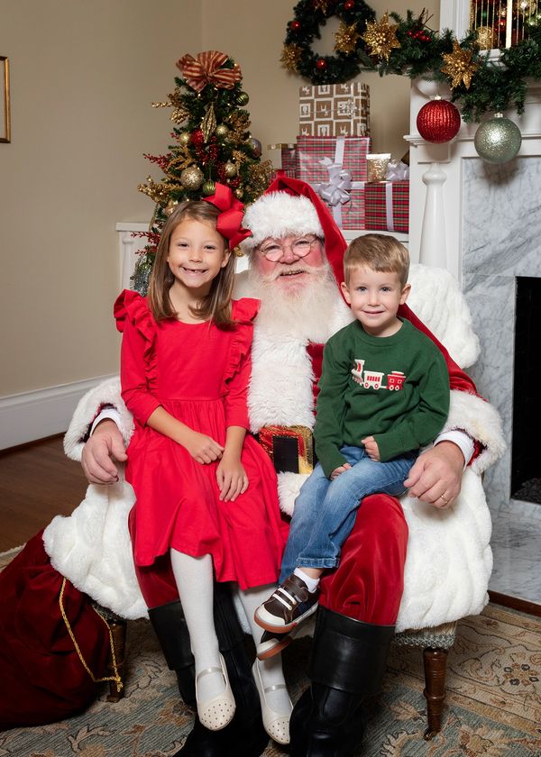 A Three-Minute Appointment with Santa Claus. Plenty of time to share your wish list and Christmas dreams with St. Nick. Have a "ho, ho, ho!" on his knee, and Aesthetic Images Photography will be there to capture it all. $69. An additional opportunity for a family portrait in the Junior League House or Garden.